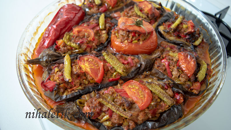 ** Salçalı suyu eklerken kaşık kaşık eklerseniz karnıyarığın içindeki etlerin düzeni bozulmaz.