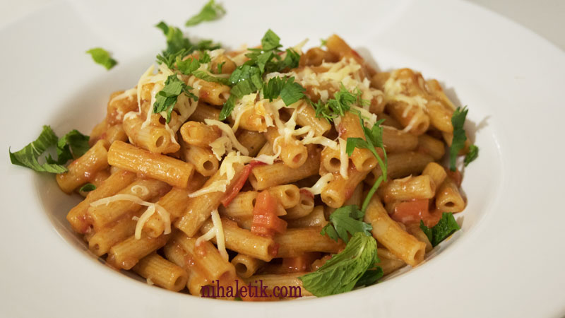 Yapabileceğiniz en kolay makarna tarifi. Soslu makarnayı seviyorsanız bu makarna tam size göre. Suyunu süzmeden demleme usulü yapılan soslu makarnayı yapmanız sadece 5 dakikanızı alacak.