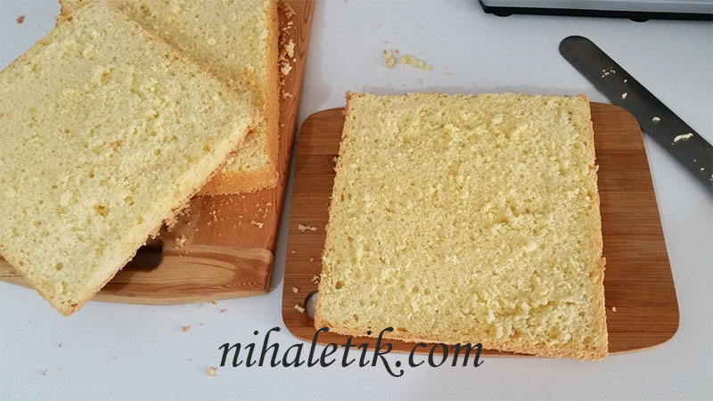 • Kekinizi kalıptan çıkarıp 3 veya 4 kat dilimleyin.